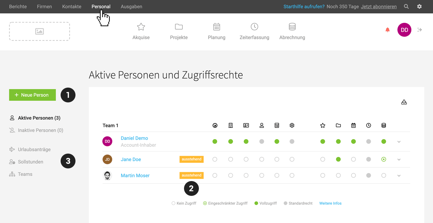 Viele User nutzen MOCO nicht von Anfang an im vollen Umfang, sondern arbeiten sich nach und nach in die unterschiedlichen Bereiche ein.