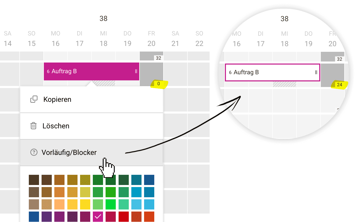Gerade wenn Projekte schon geplant werden sollen, ohne dass viel mehr klar ist, kannst du dir die Option der vorläufigen Planung zunutze machen.
