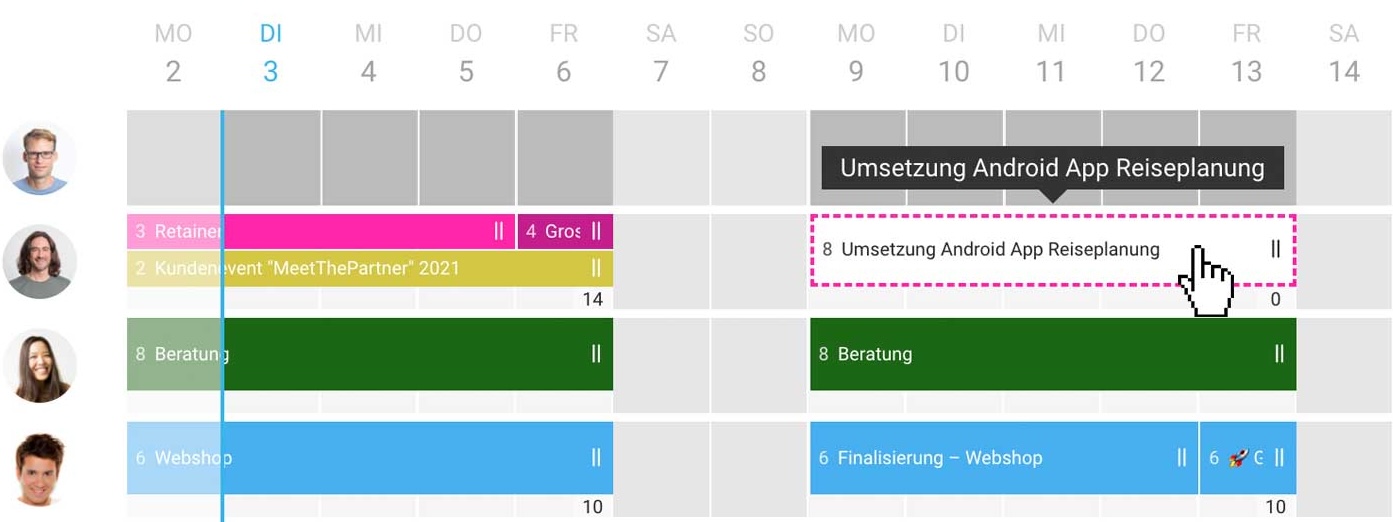 👉 Dein Vertrieb sieht auf einen Blick, welche Starttermine und Deadlines realistisch sind.