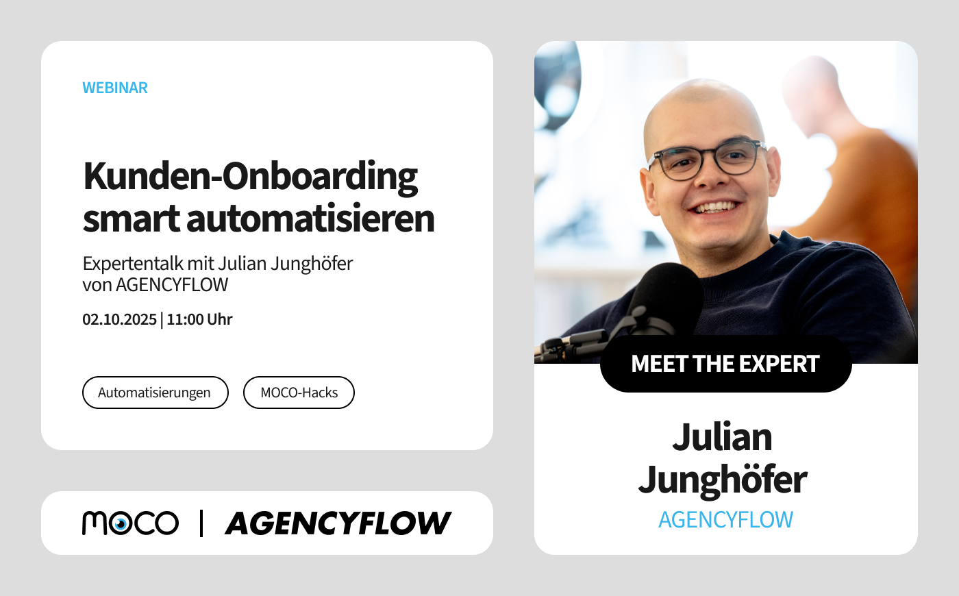 17.06.25 | Am 26. Juni fand unser Live-Webinar mit AGENCYFLOW-Gründer Julian Junghöfer & dem MOCO-Experten Haris Suta statt. Das Thema: Agenturprozesse...